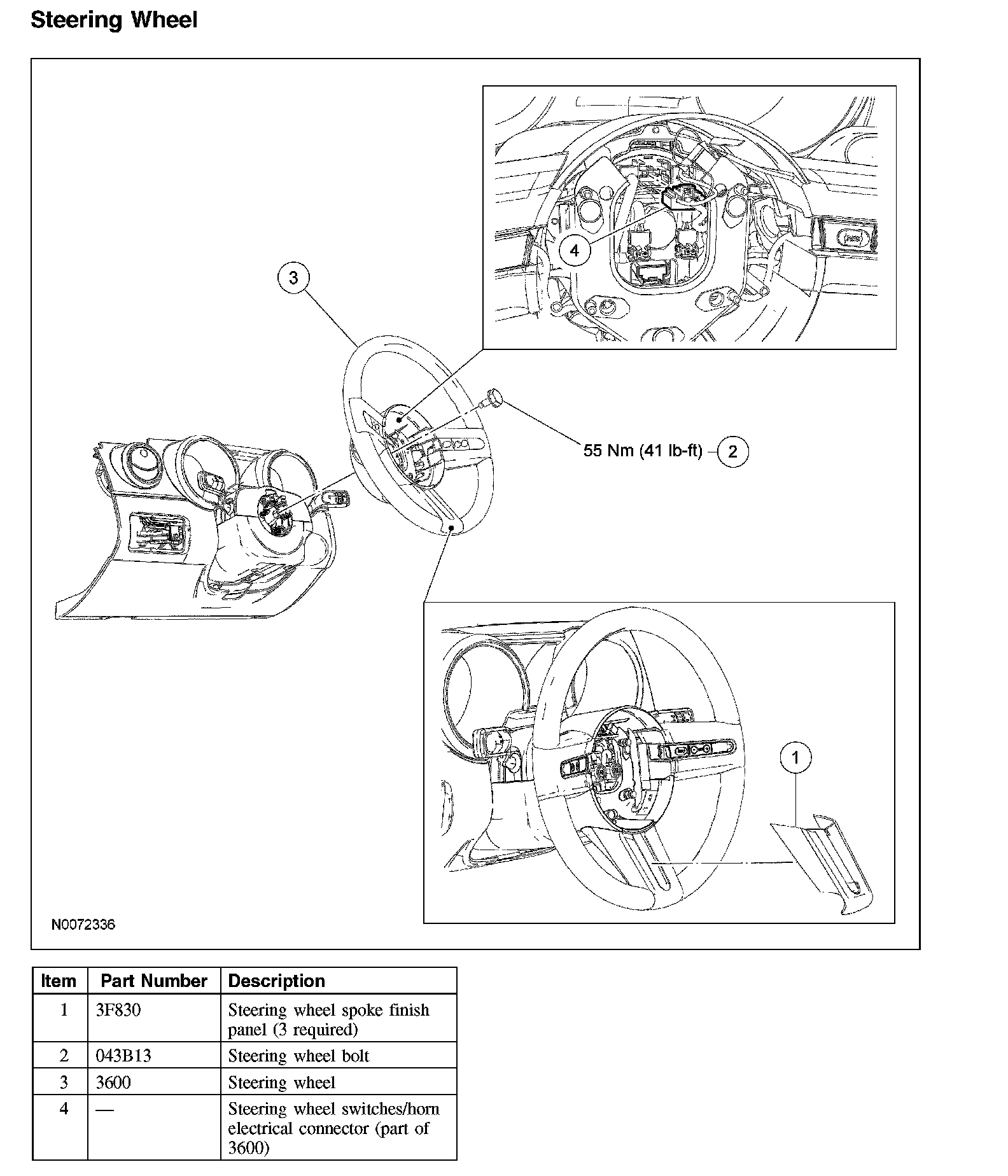 NOTE: The steering wheel spoke finish panel(s) can be serviced separately. A new steering wheel does not need to be installed.