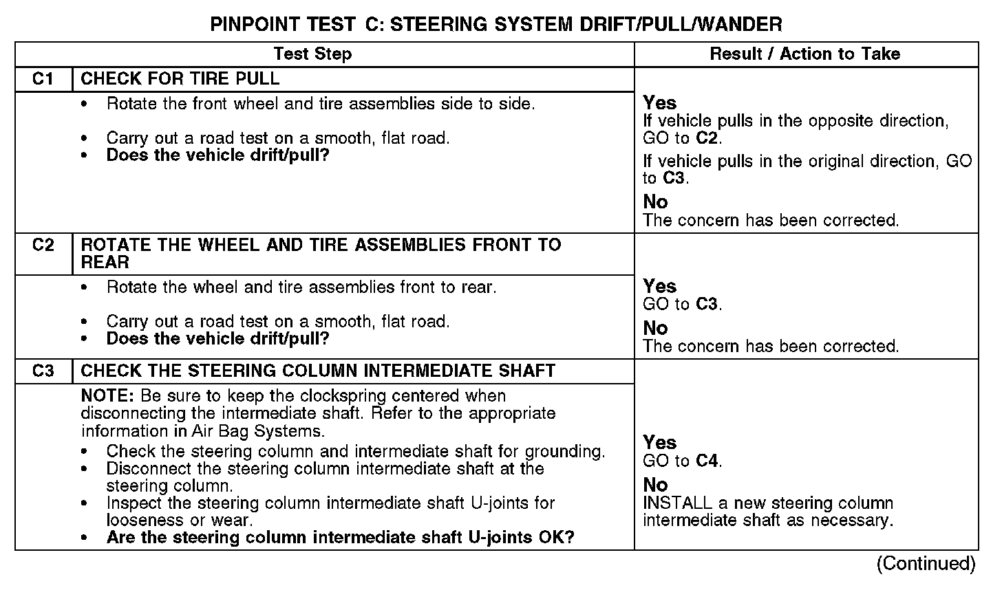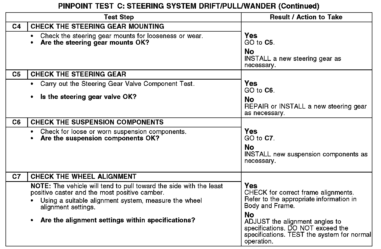 Pinpoint Test C: Steering System Drift/Pull/WanderThis pinpoint test is intended to diagnose the following: