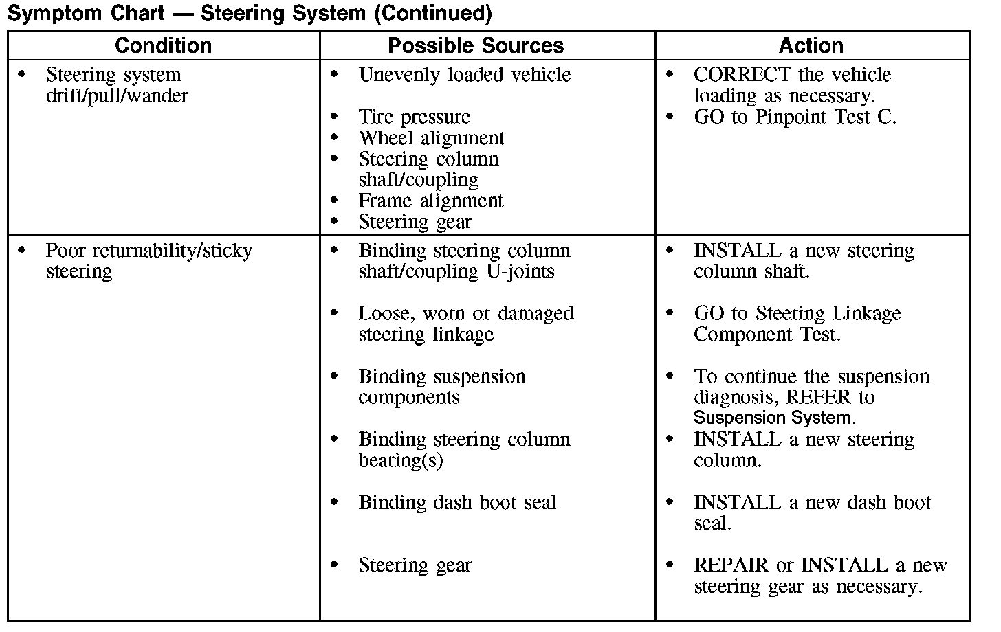 Symptom Chart - Steering System (Part 2):