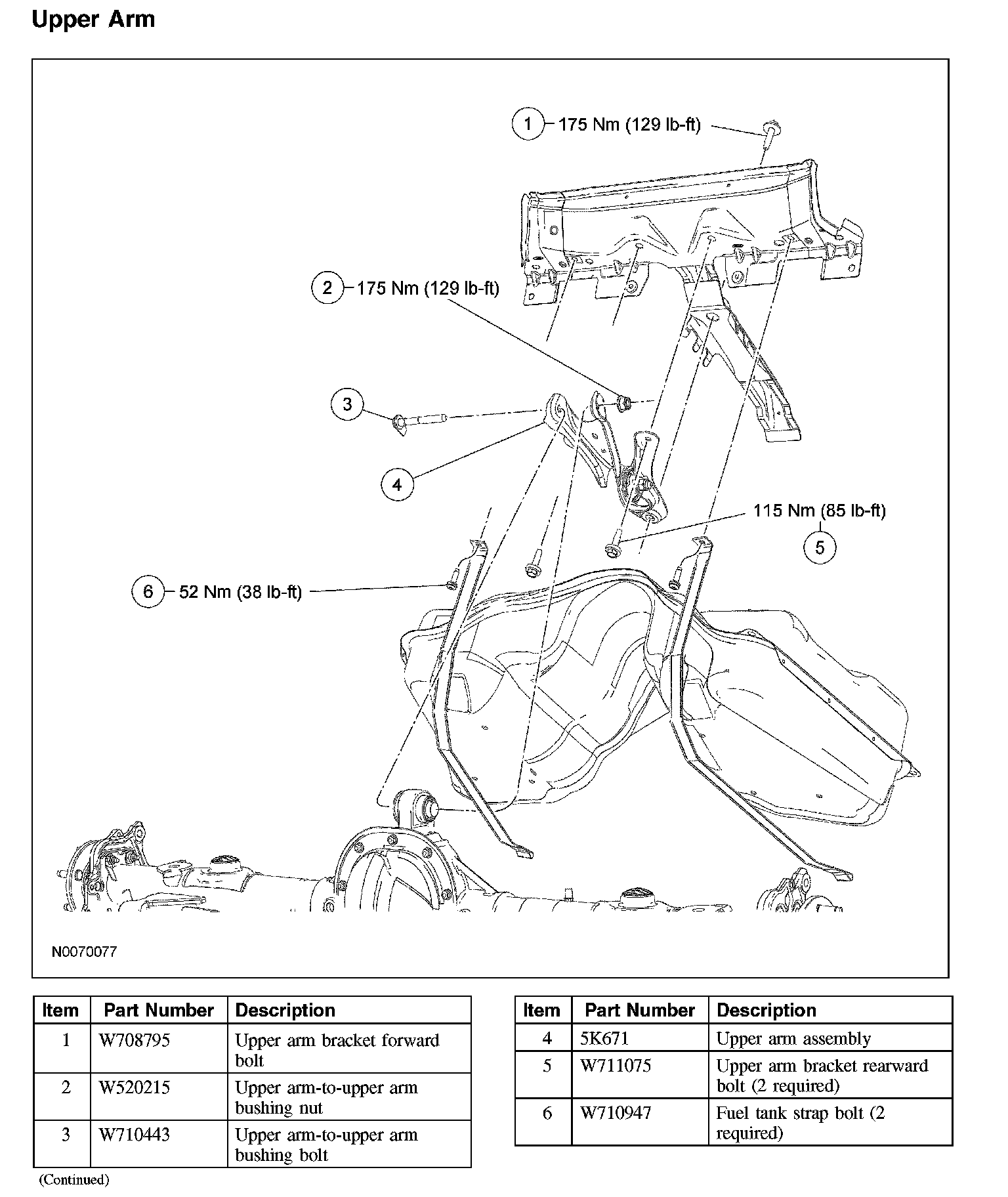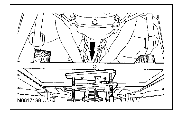 12. CAUTION: Tighten the upper arm fasteners while the suspension is at curb height or bushing damage and incorrect clamp load may occur.