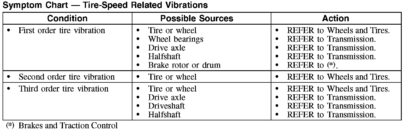 Symptom Chart - Tire-Speed Related Vibrations