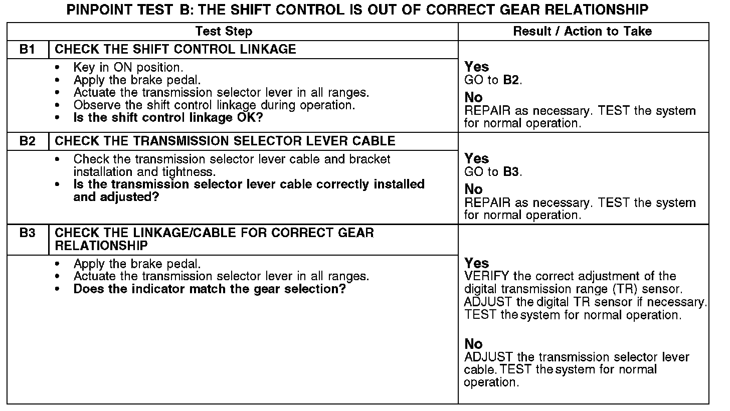 PINPOINT TEST B: THE SHIFT CONTROL IS OUT OF CORRECT GEAR RELATIONSHIP