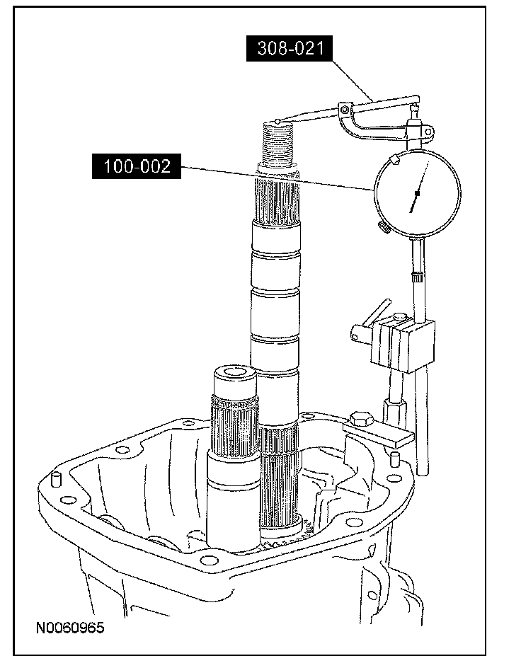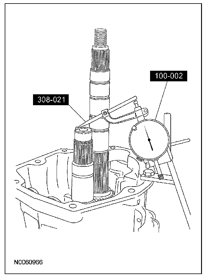 Using the special tools, measure the input shaft/output shaft end play by applying an upward load on the input shaft. Record the measurement.