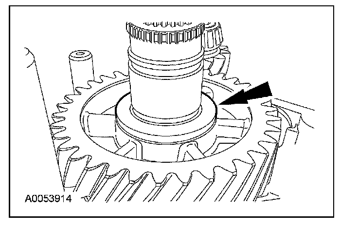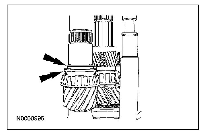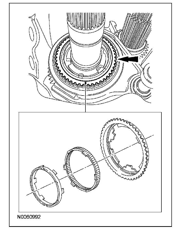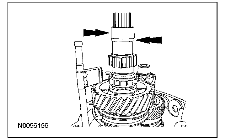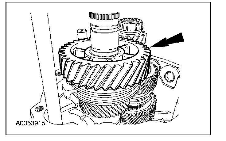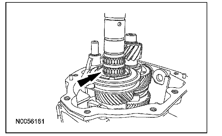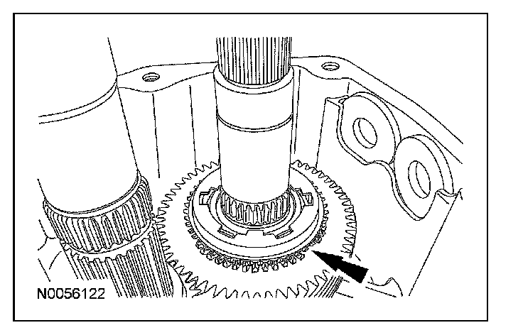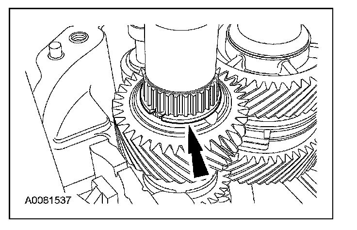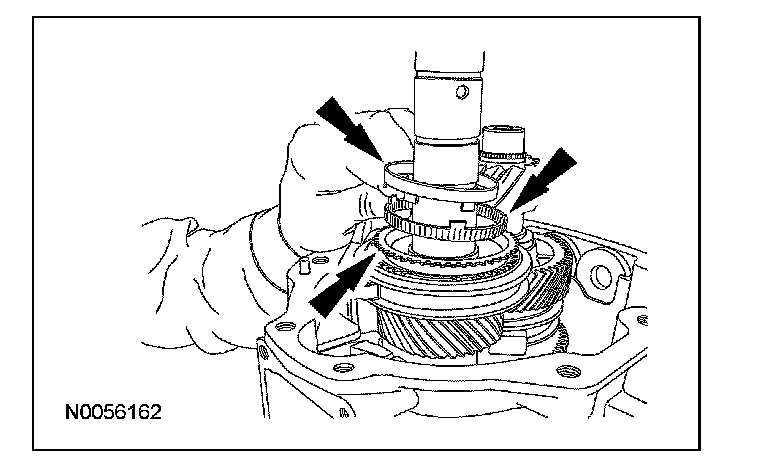 ^ Rotate the output shaft to engage the 4th gear synchronizer blocking ring with the synchronizer keys.