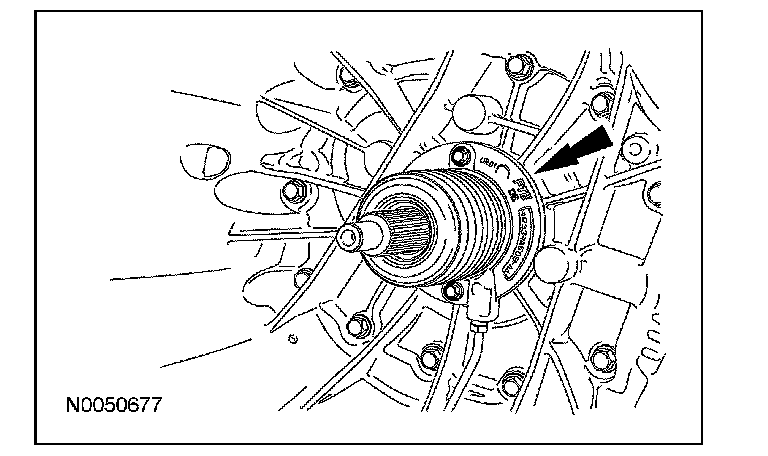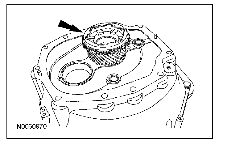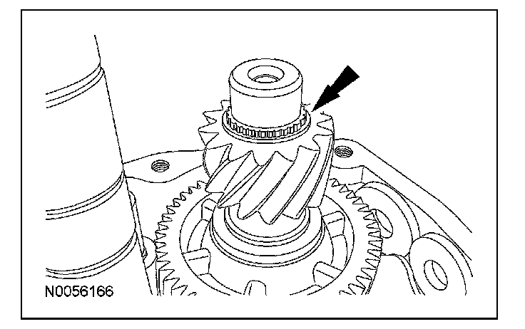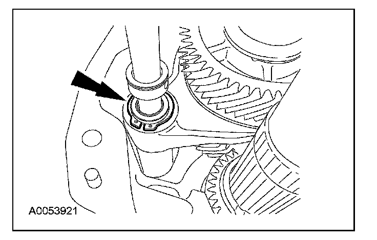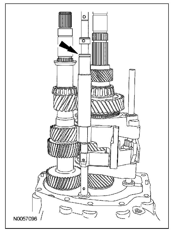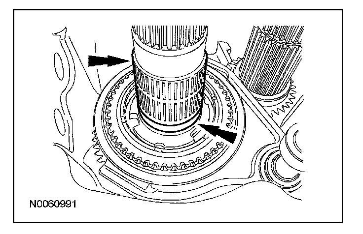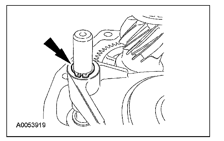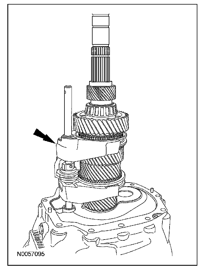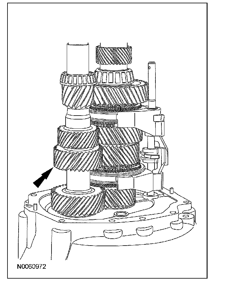 ^ Rotate the output shaft to engage the 4th gear synchronizer blocking ring with the synchronizer keys.