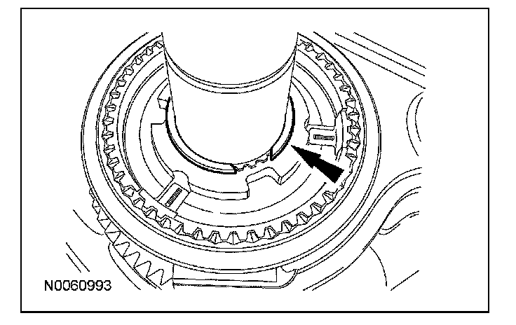 ^ Before installing the blocking ring, index-mark the blocking ring to the synchronizer hub.