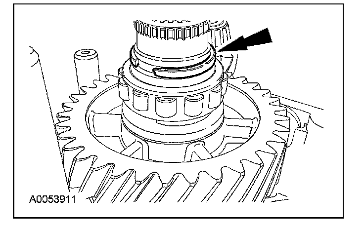 41. Install a new reverse gear synchronizer snap ring.
