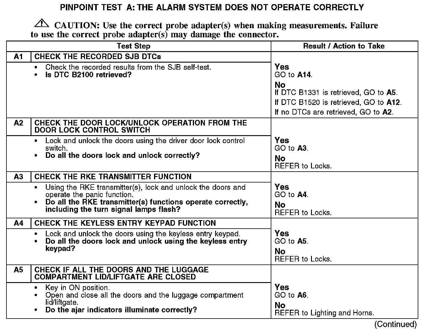 PINPOINT TEST A: THE ALARM SYSTEM DOES NOT OPERATE CORRECTLYNormal Operation