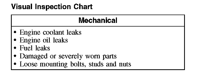 2. Visually inspect for obvious signs of mechanical damage. Refer to the following chart.