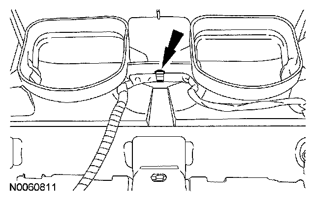 24. Remove the wiring harness pin-type retainer, located in the audio unit opening, from the center air duct.