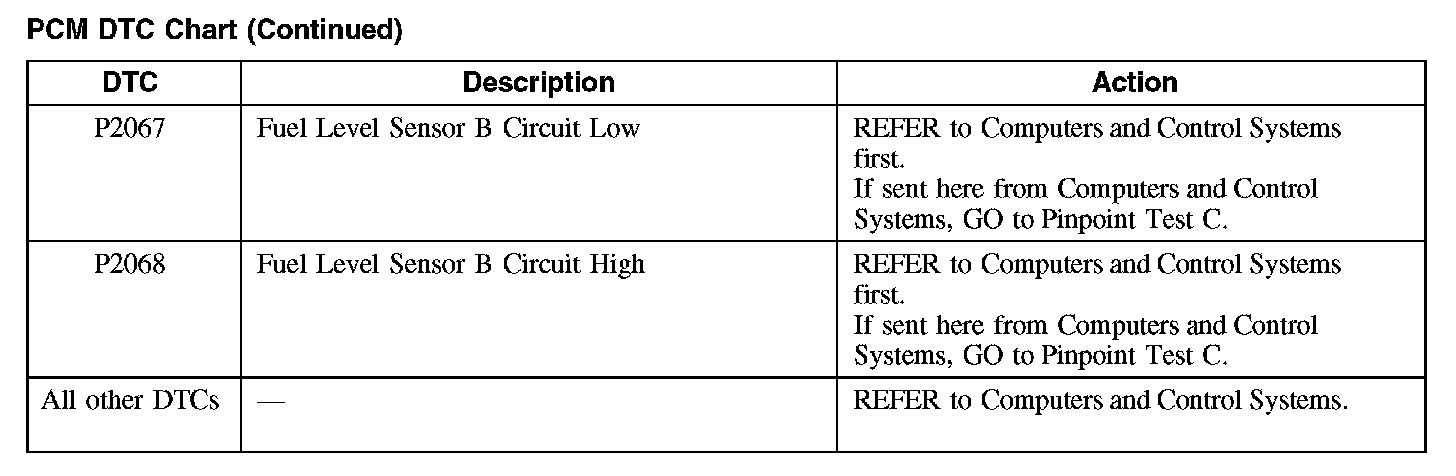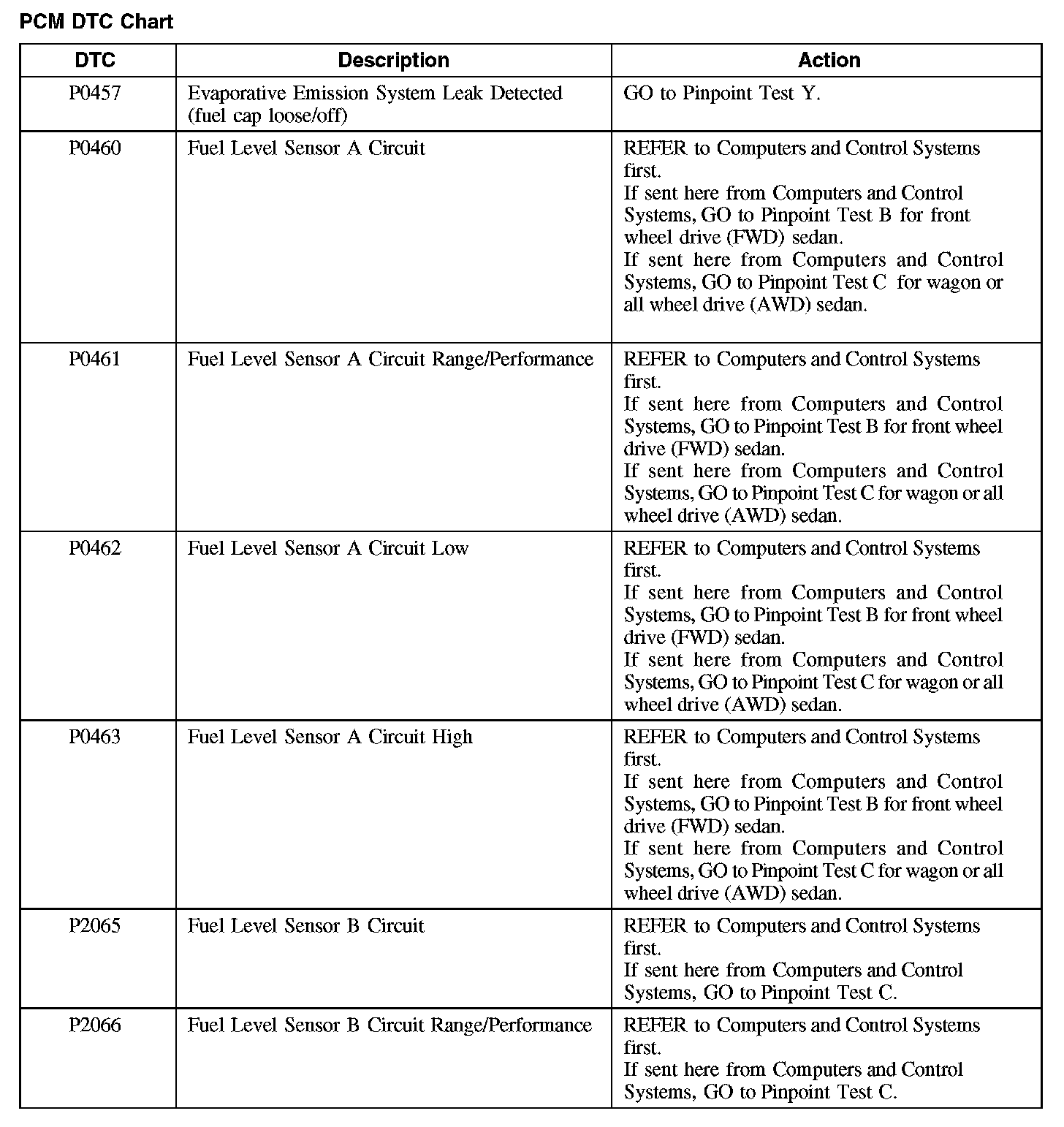 PCM DTC Chart