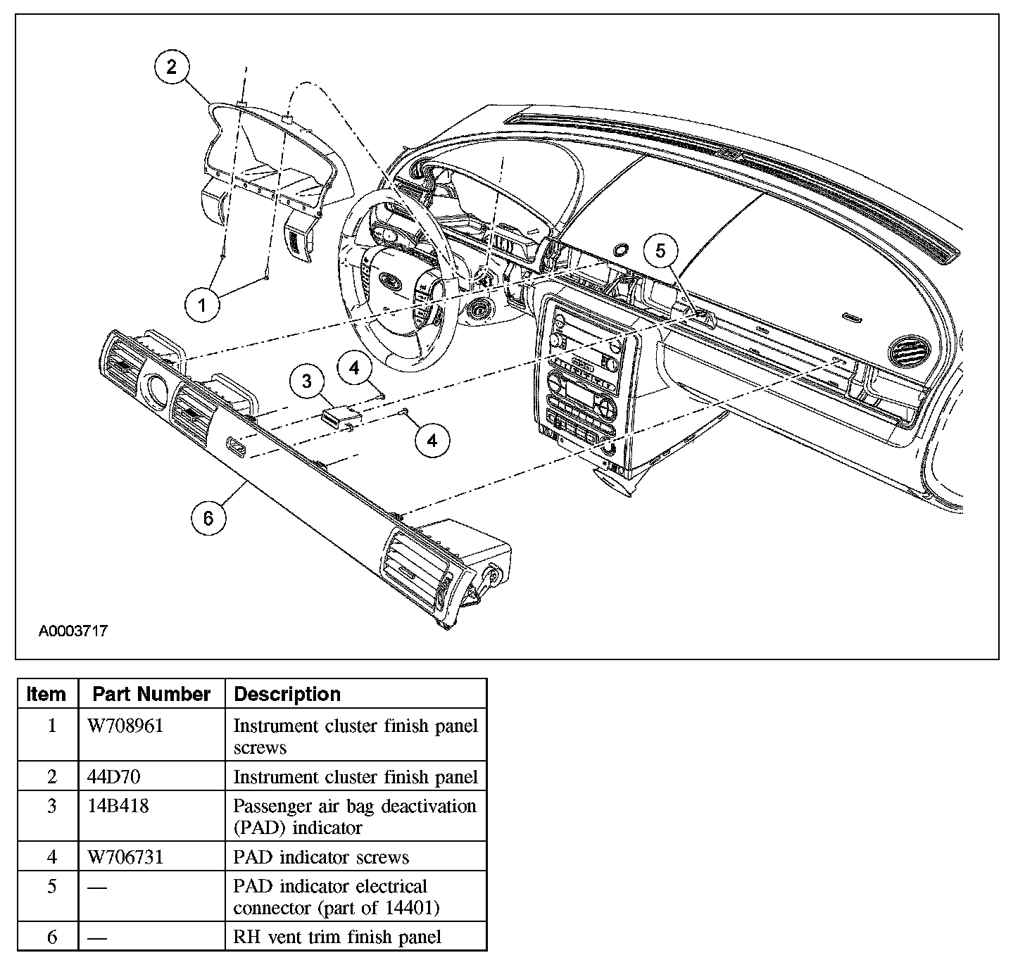 PASSENGER AIR BAG DEACTIVATION (PAD) INDICATORRemoval and Installation