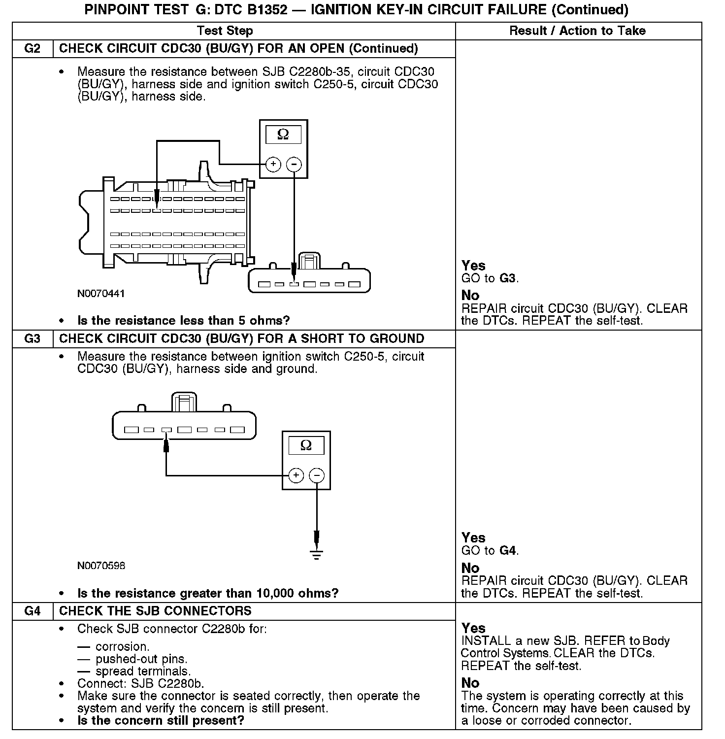 Test G: DTC B1352 - Ignition Key-In Circuit Failure