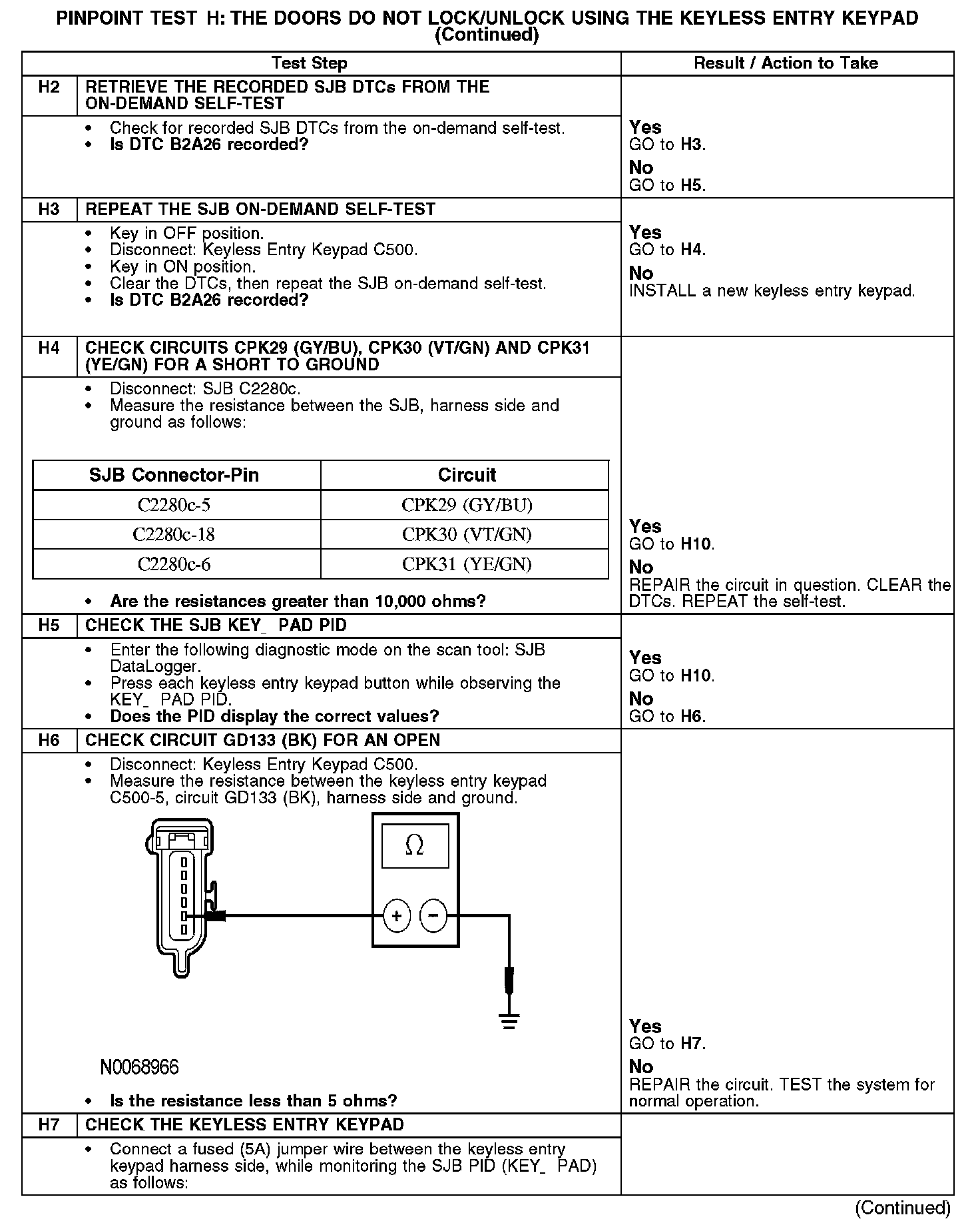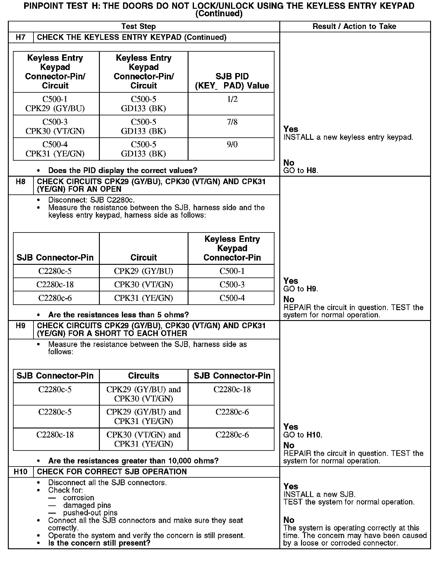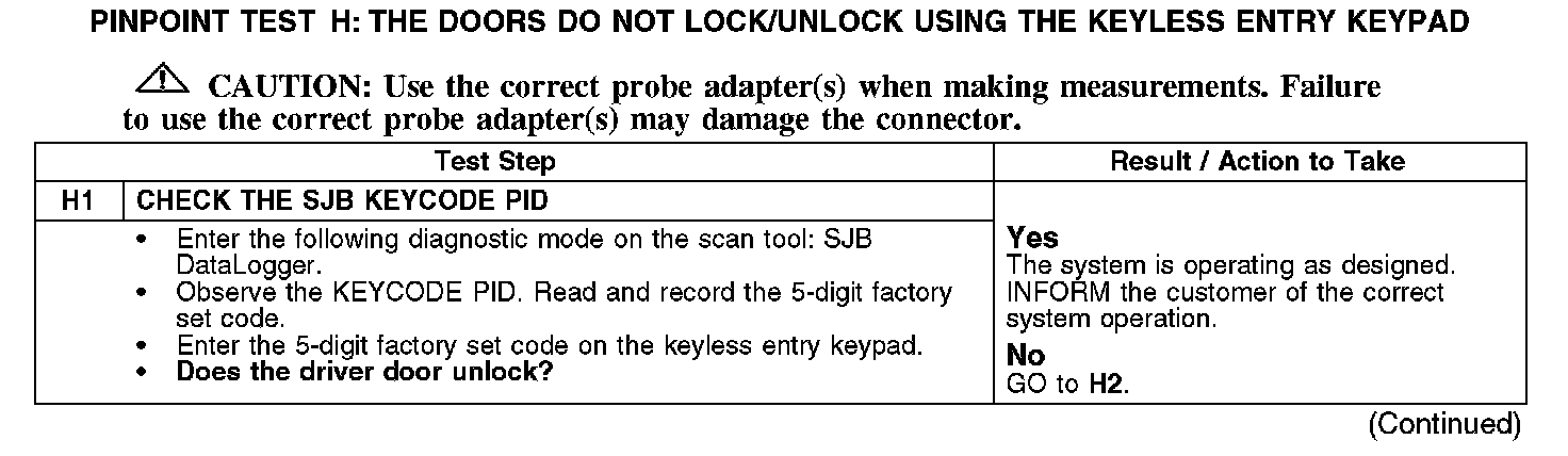 PINPOINT TEST H: THE DOORS DO NOT LOCK/UNLOCK USING THE KEYLESS ENTRY KEYPAD
