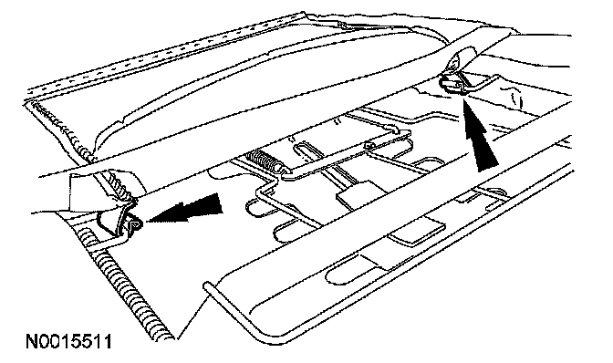 1 Position the backrest trim cover duon tube above the lumbar support wire hooks.