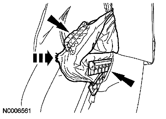 - Check the seat side air bag deployment chute for damage. The deployment chute must not be repaired. If there is any damage to the deployment chute, a new seat back trim cover and deployment chute must be installed as a unit. Failure to follow these instructions may result in the seat side air bag module deploying incorrectly and increase the risk of serious personal injury or death in a crash.