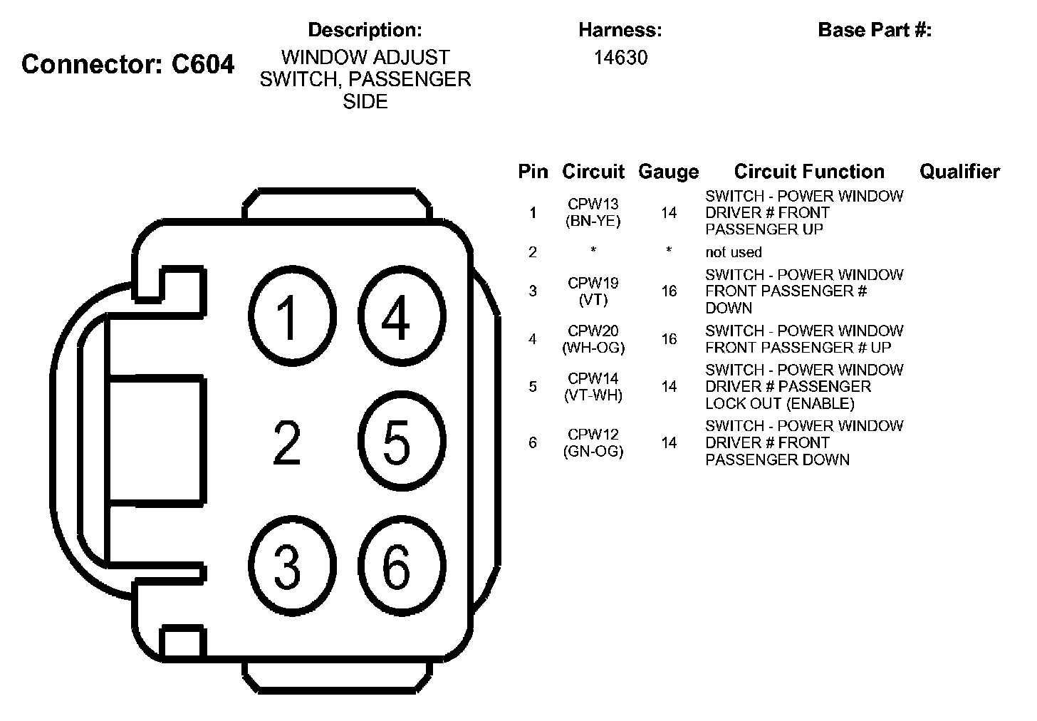 Window Adjust Switch, Passenger Side