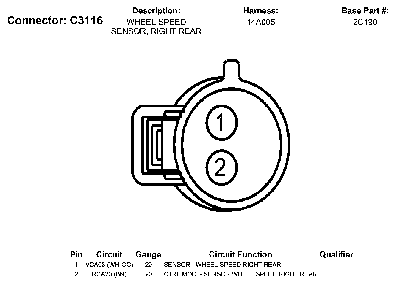 Wheel Speed Sensor, Right Rear