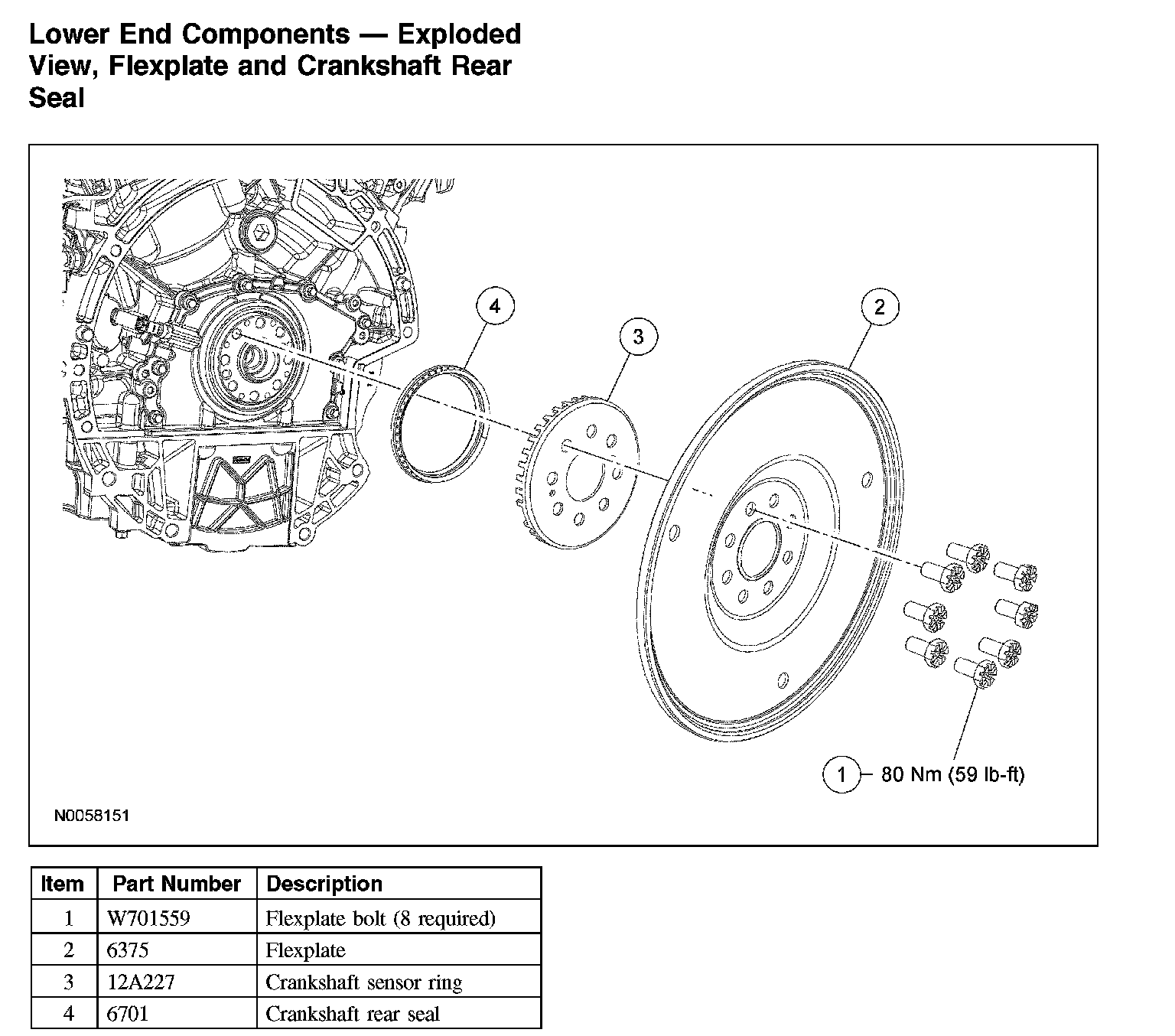Lower End Components - Exploded View, Flexplate And Crankshaft Rear Seal: