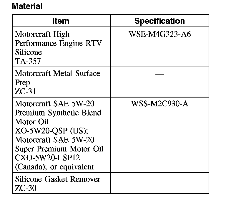 4. CAUTION: Failure to use Motorcraft High Performance Engine RTV Silicone may cause the engine oil to foam excessively and result in serious engine damage.