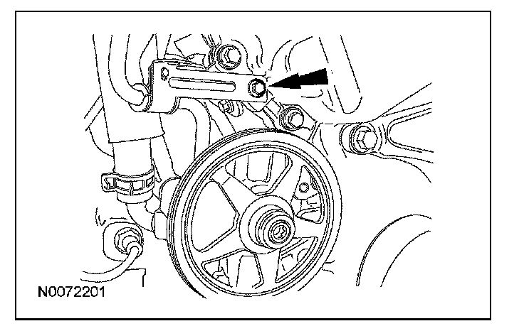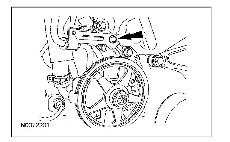 22. Remove the PSP tube bracket-to-power steering pump bolt.