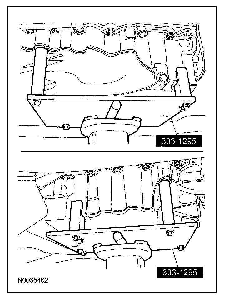 24. CAUTION: The special tool must be carefully aligned to the mounting bosses on the oil pan. Failure to follow these instructions may result in damage to the oil pan.