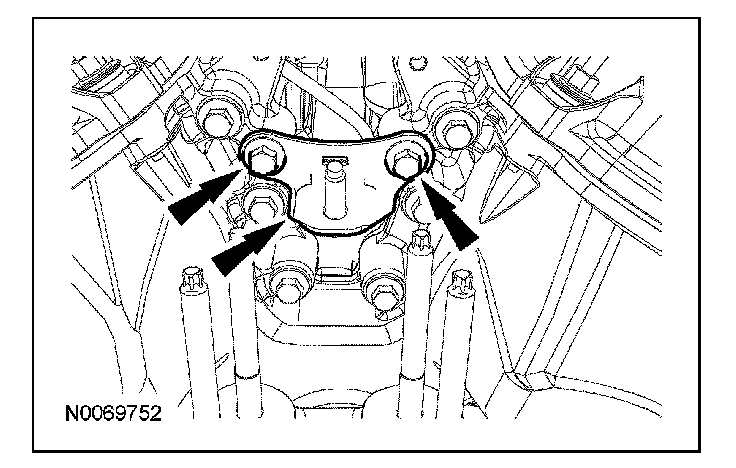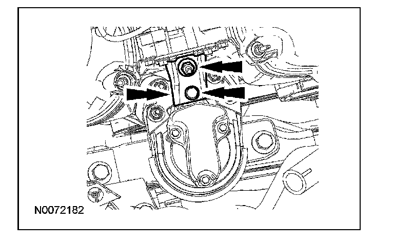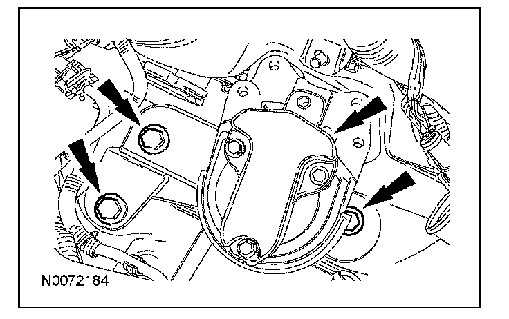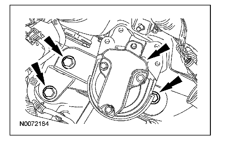 Apply a 3.0 mm (0.11 in) bead of Motorcraft High Performance Engine RTV Silicone to the engine front cover sealing surfaces including the 3 engine mount bracket bosses.