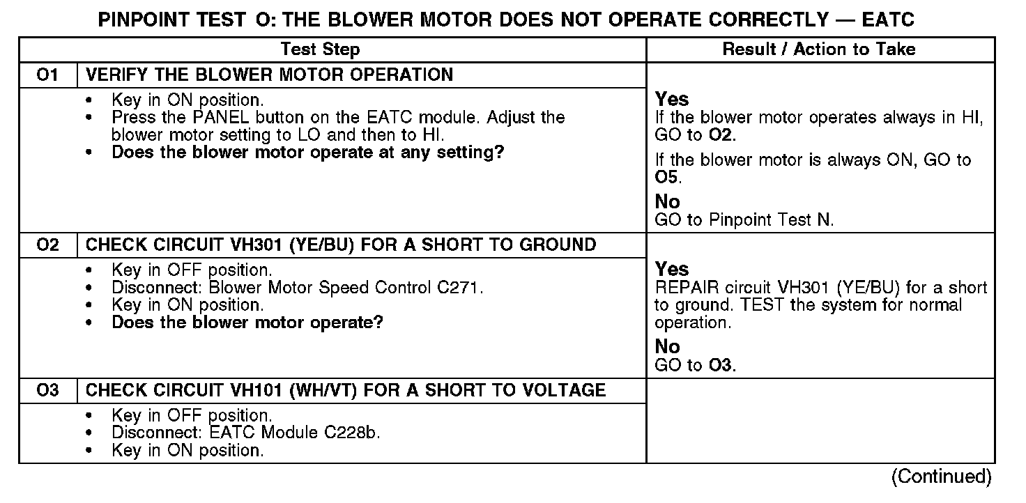 PINPOINT TEST O: THE BLOWER MOTOR DOES NOT OPERATE CORRECTLY - EATCNormal Operation
