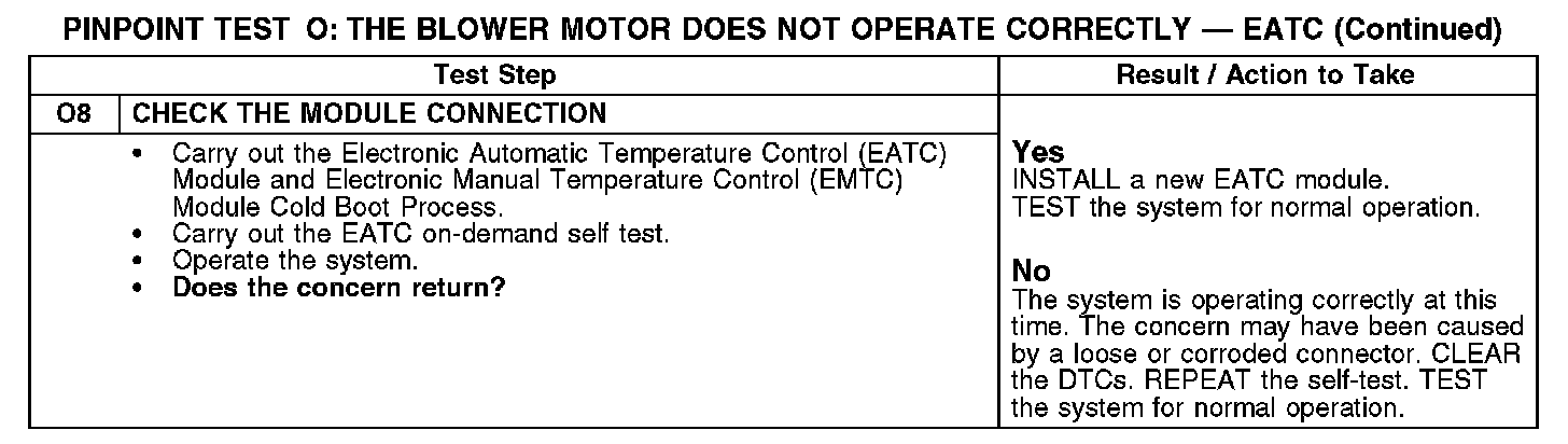 Test O: The Blower Motor Does Not Operate Correctly - EATC