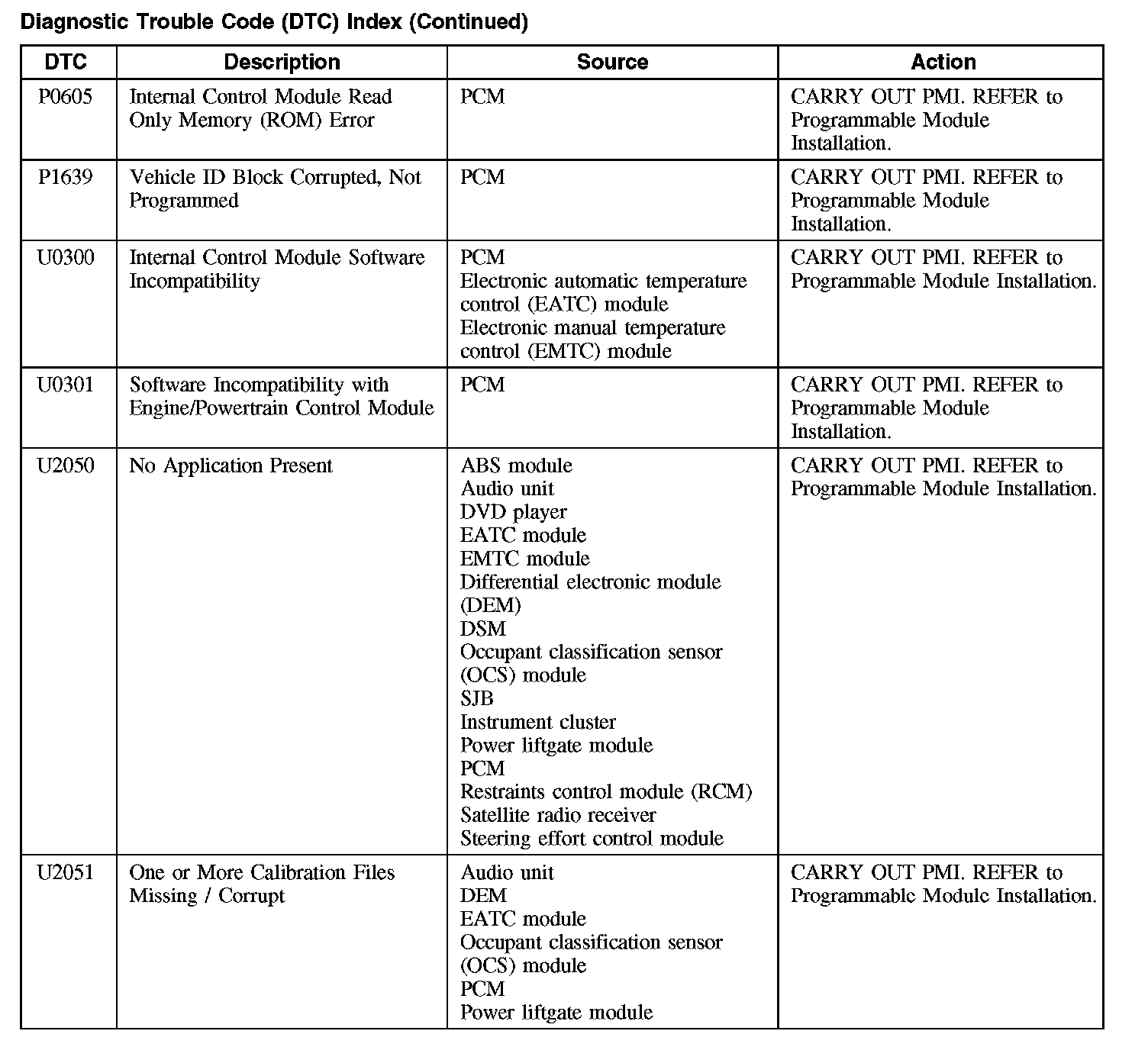 P0605-P1639 / U0300-U2051: