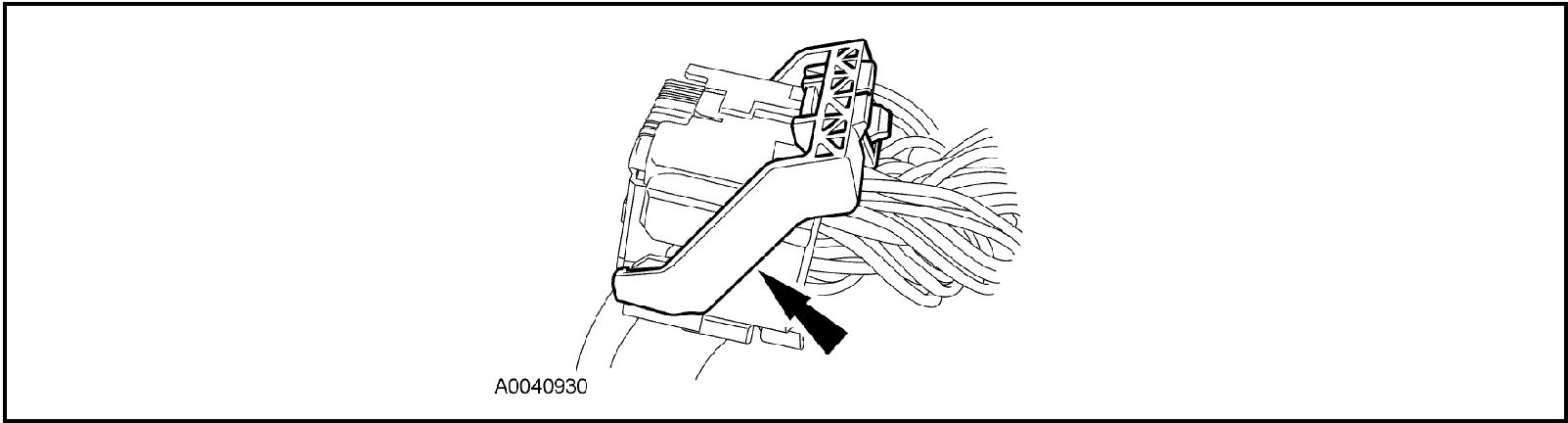 NOTICE: Do not push the co'iiiector to the point where the lever pivots and seats itself Light pressure is needed to get the connector into position on the Restraints Control Module (RCM), hefore using the lever to fully seat the connector. Failure to follow these instructions may cause component or connector damage.