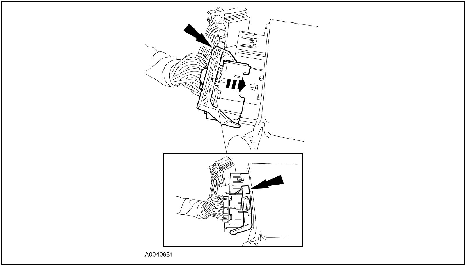Pivot the connector position assurance lever toward the RCM, drawing the connector in to the RCM.