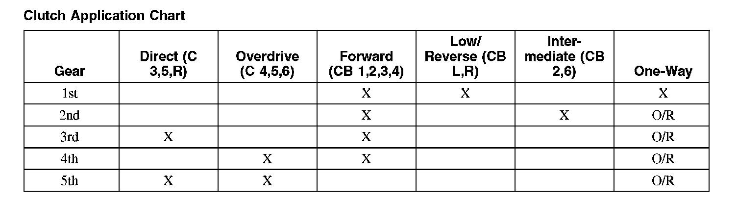 Clutch Application Chart:
