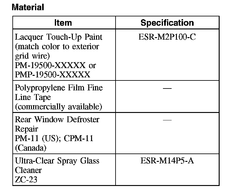 - If the brown layer is not broken or missing, apply only the silver grid repair compound to the break. If both the brown and silver layers of the grid are broken or missing, apply a coating of the lacquer touch up paint across the break in the grid line prior to applying the rear window defroster repair compound. Do not overlap the silver grid line with the paint. Several applications may be necessary to achieve a color match.
