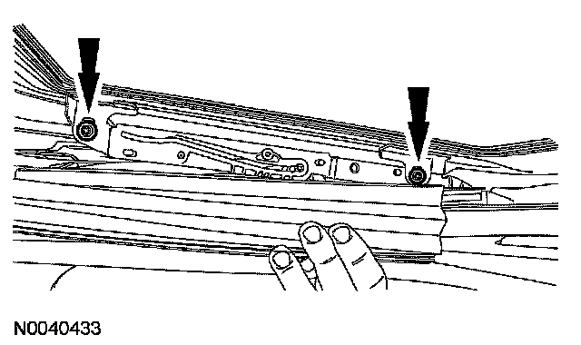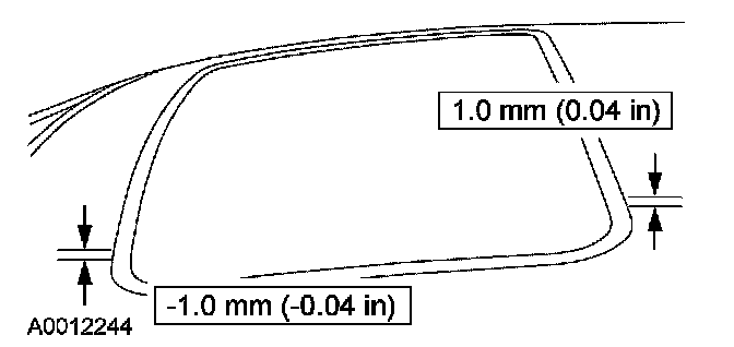 ROOF OPENING PANEL ALIGNMENTNOTE: The roof opening panel motor must be initialized when repairs are carried out on any part of the roof opening panel system, including: whenever the roof opening panel motor has been removed from the roof opening panel system, the roof opening panel glass has been removed from the roof opening panel system, the roof opening panel assembly has been removed from the vehicle, a new roof opening panel motor has been installed, a new roof opening panel glass has been installed or a new roof opening panel assembly has been installed. For additional information, refer to Roof Opening Panel Motor Initialization. Programming and Relearning