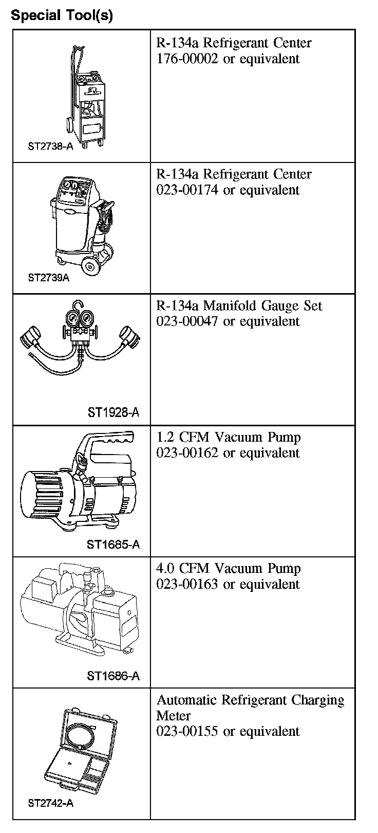 AIR CONDITIONING (A/C) SYSTEM RECOVERY, EVACUATION AND CHARGINGSpecial Tool(s)