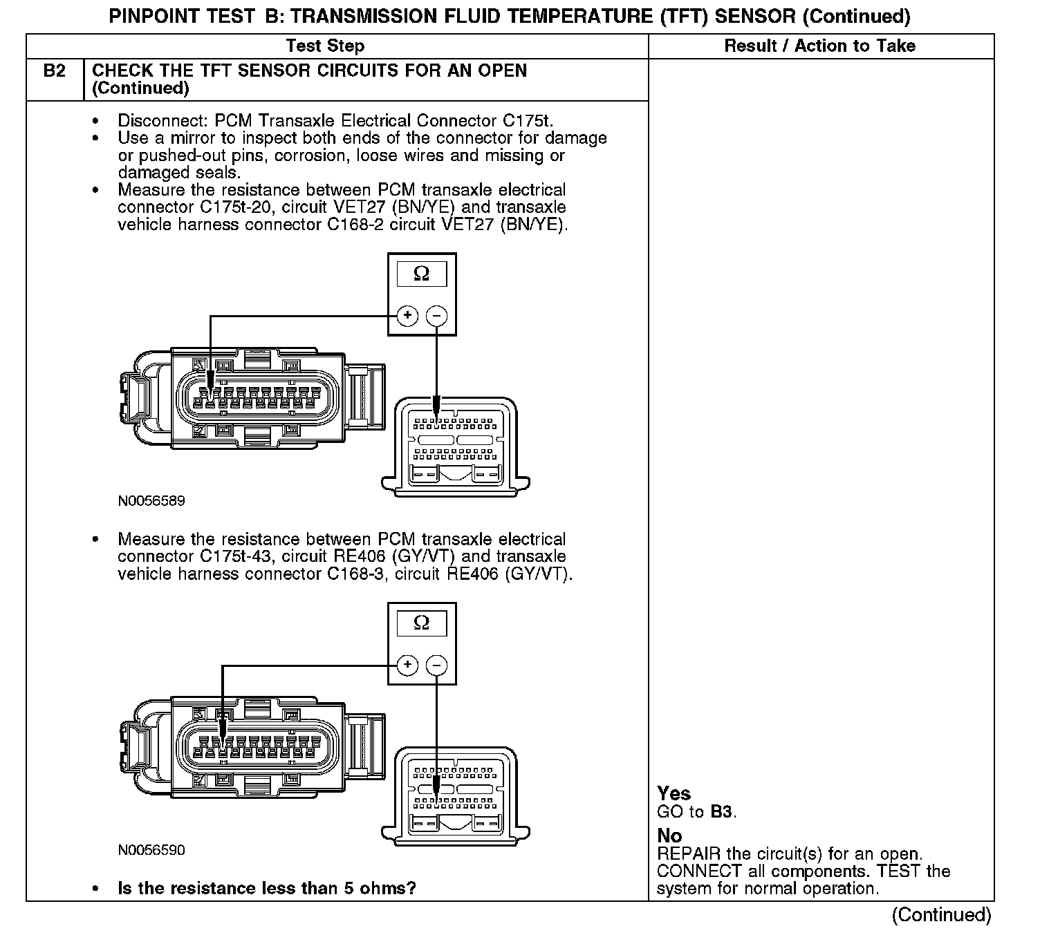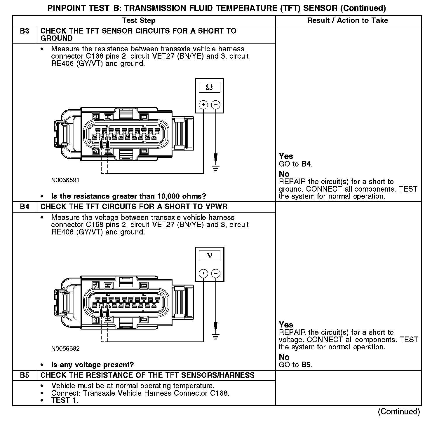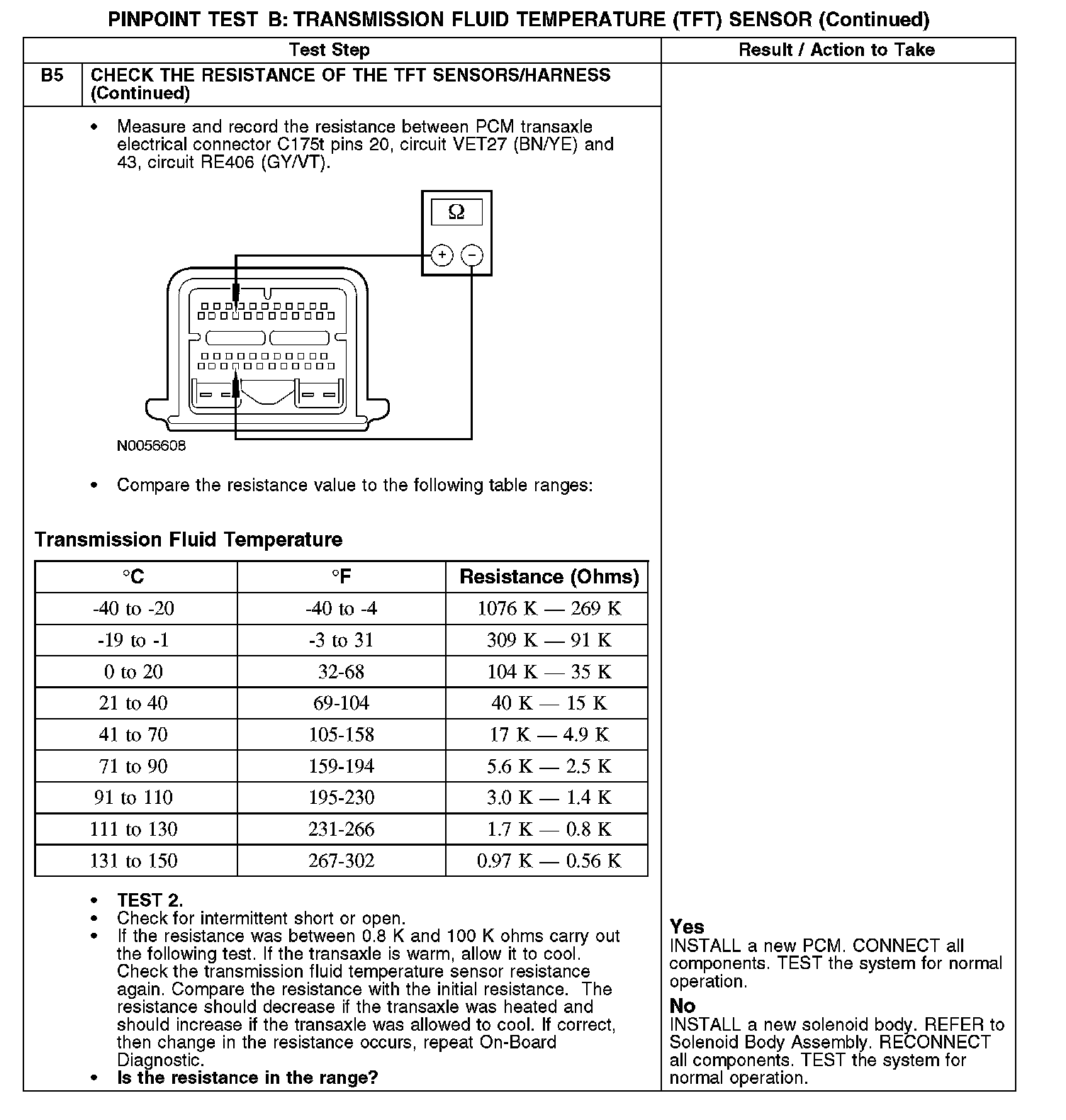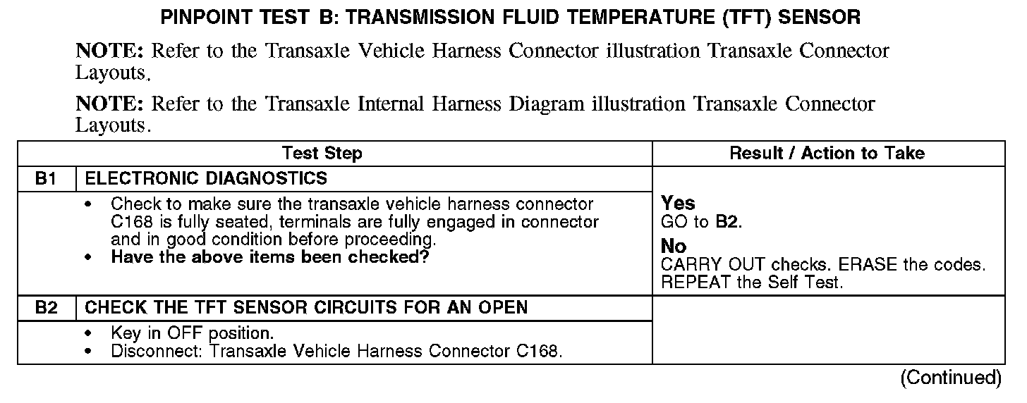 PINPOINT TEST B: TRANSMISSION FLUID TEMPERATURE (TFT) SENSOR