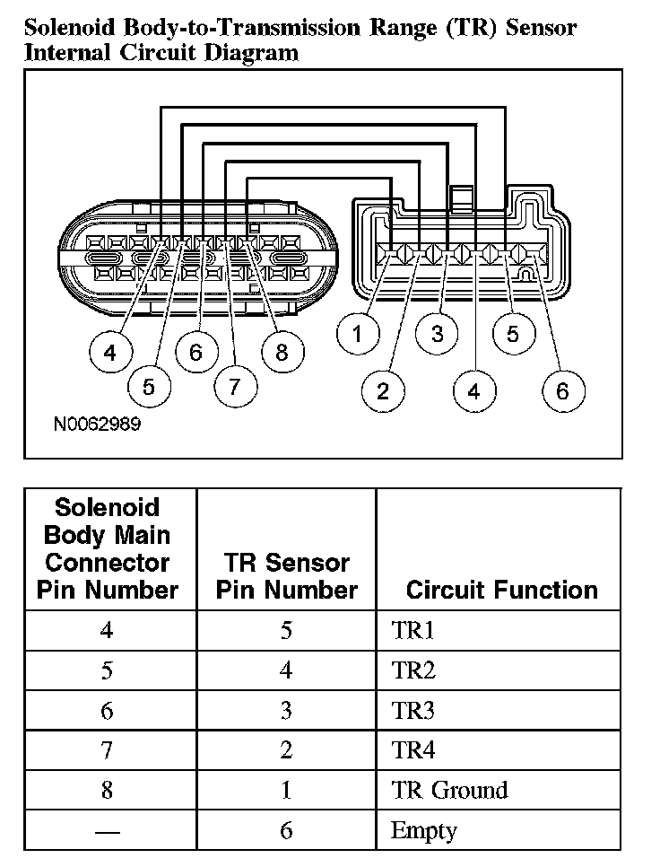 Solenoid Body-to-Transmission Range (TR) Sensor Internal Circuit Diagram: