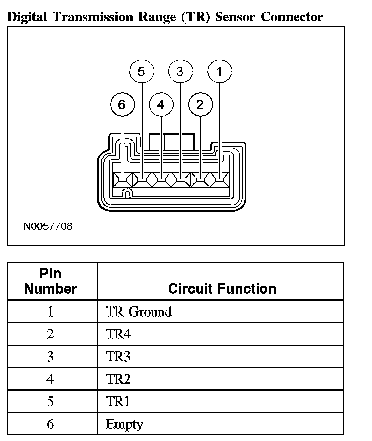 Digital Transmission Range (TR) Sensor Connector: