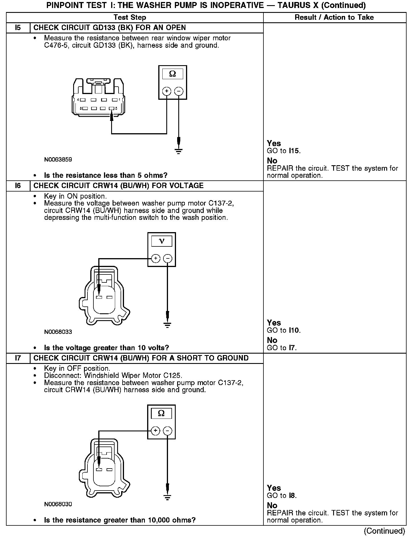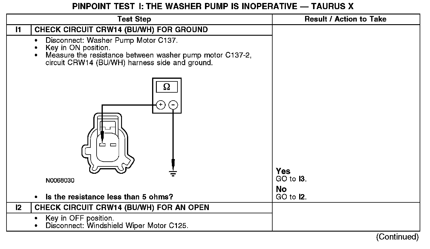 PINPOINT TEST I: THE WASHER PUMP IS INOPERATIVENormal Operation