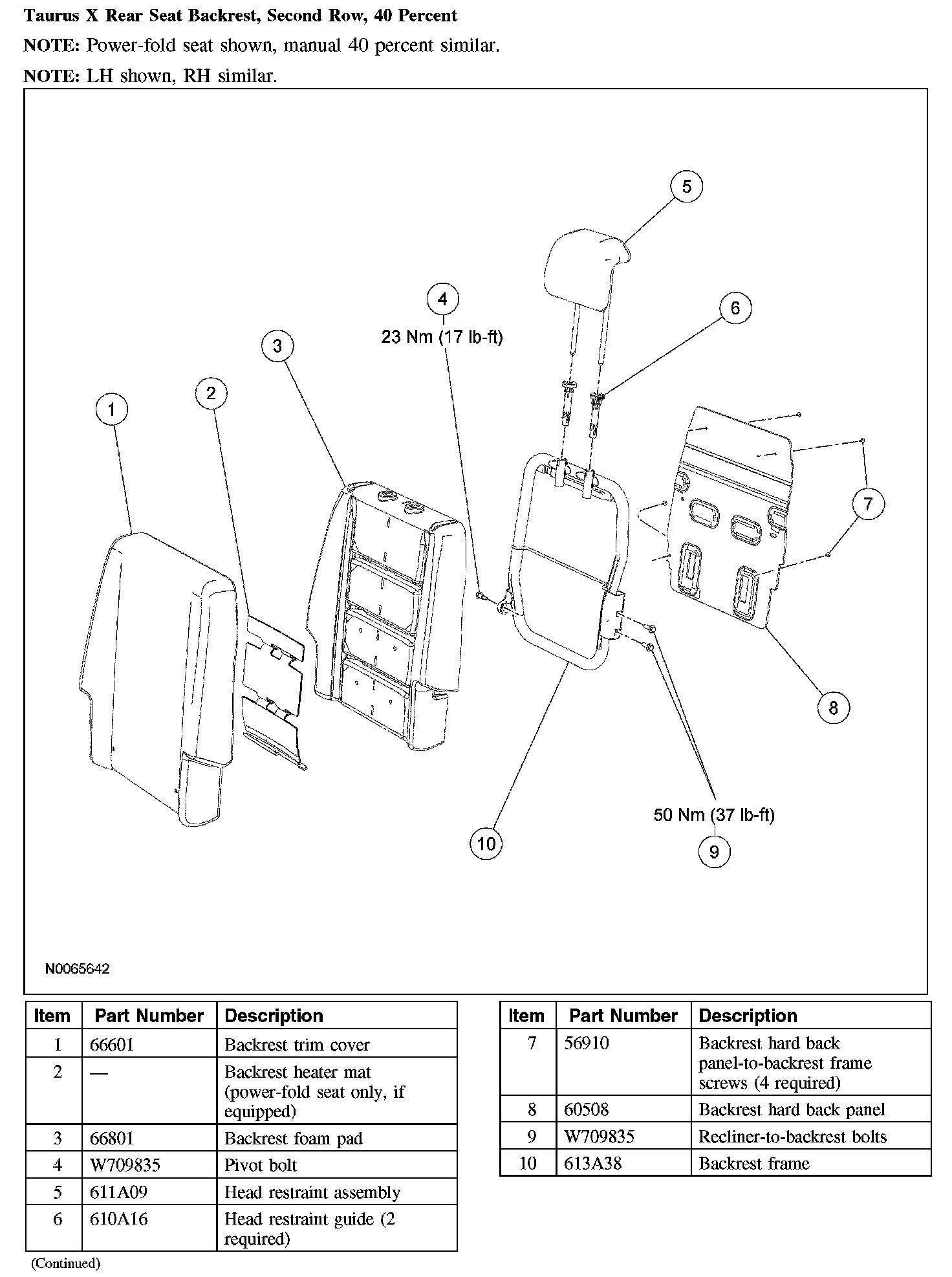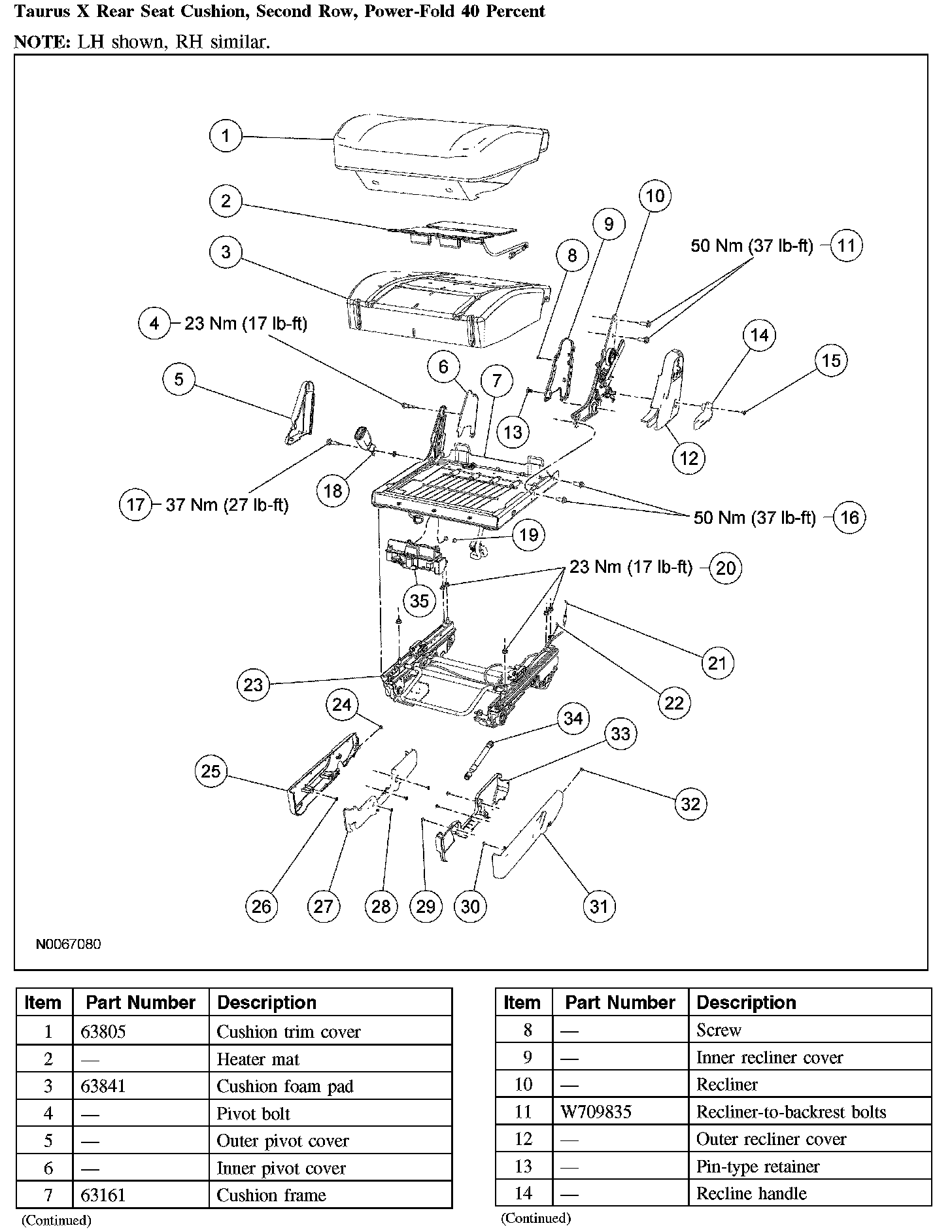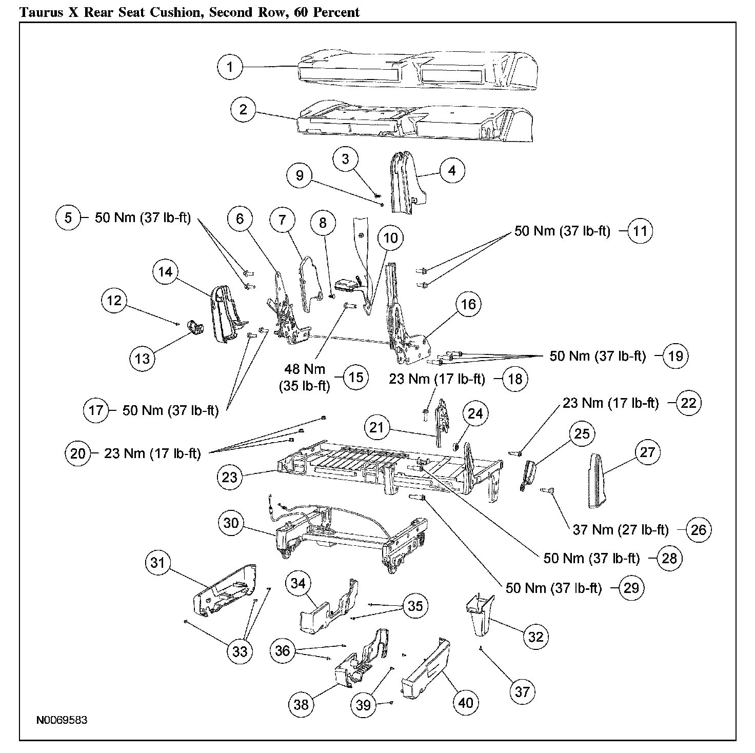 Taurus X Rear Seat Cushion, Second Row, Power-Fold 40 Percent (Part 2):