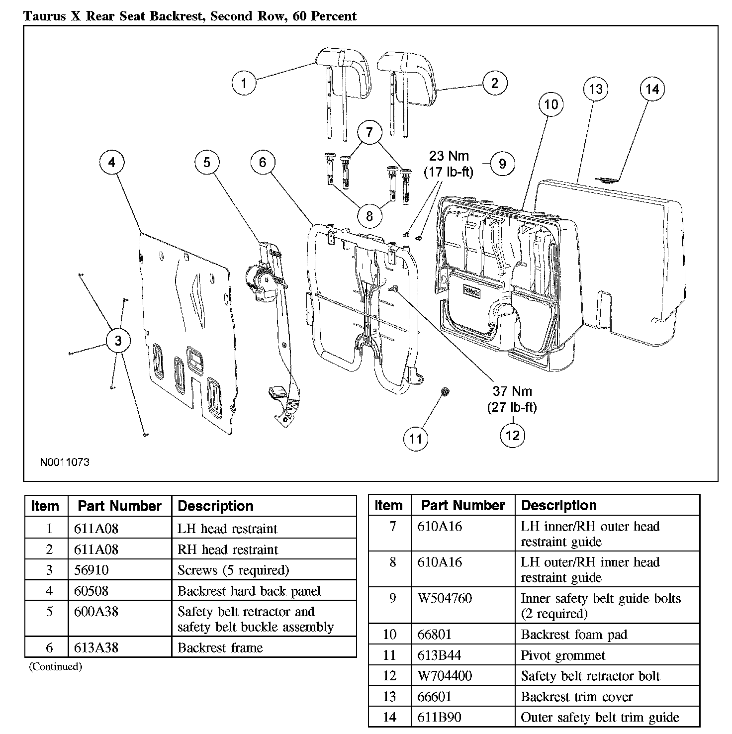 Taurus X Rear Seat Backrest, Second Row, 60 Percent: