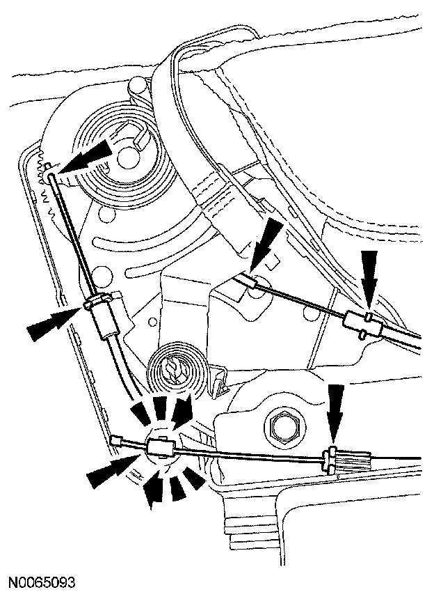 - Detach the inboard and outboard latch cable jackets from the retainers.