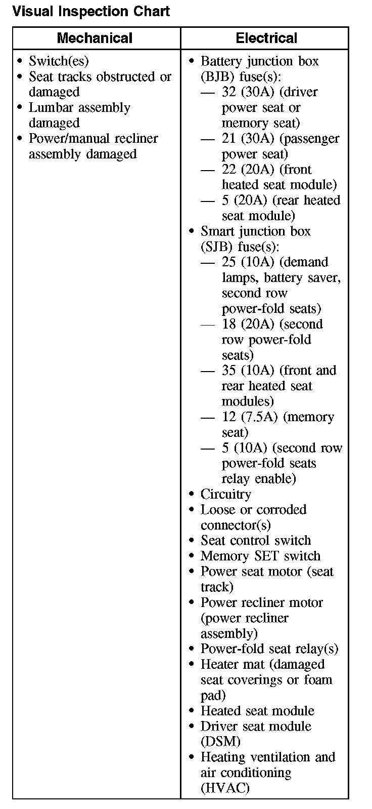 4. If the concern is with the power seat (non-memory seat) or climate controlled seat and the cause is not visually evident, verify the symptom and GO to Symptom Chart. Symptom Related Diagnostic Procedures
