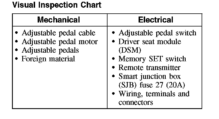 Inspection and Verification - Adjustable Pedals With Memory Feature1. Verify the customer concern by operating the adjustable pedal.