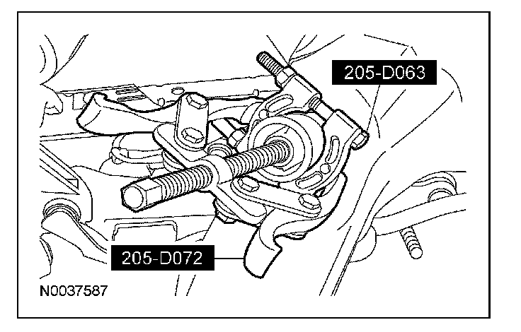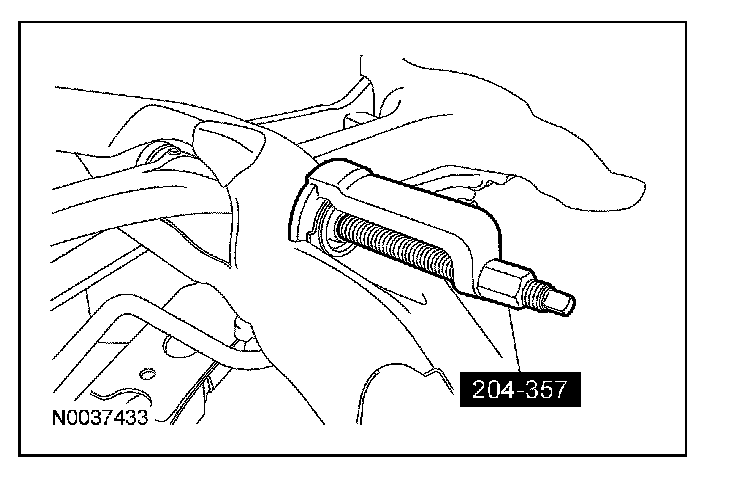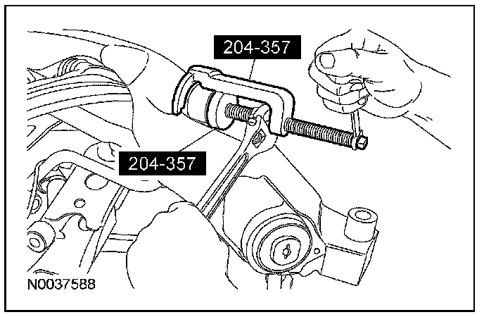 11. Using the special tool, remove the upper arm rear bushing from the subframe.