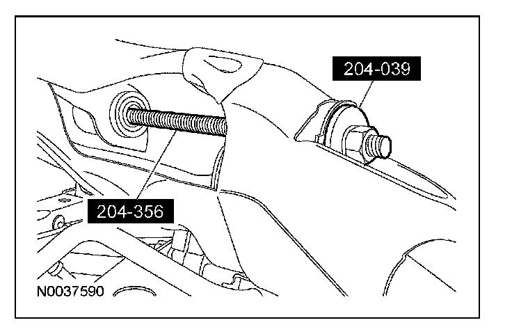 Position the upper arm rear bushing into the bushing bore from the rear of the subframe and, using the special tools, install the bushing into the subframe.