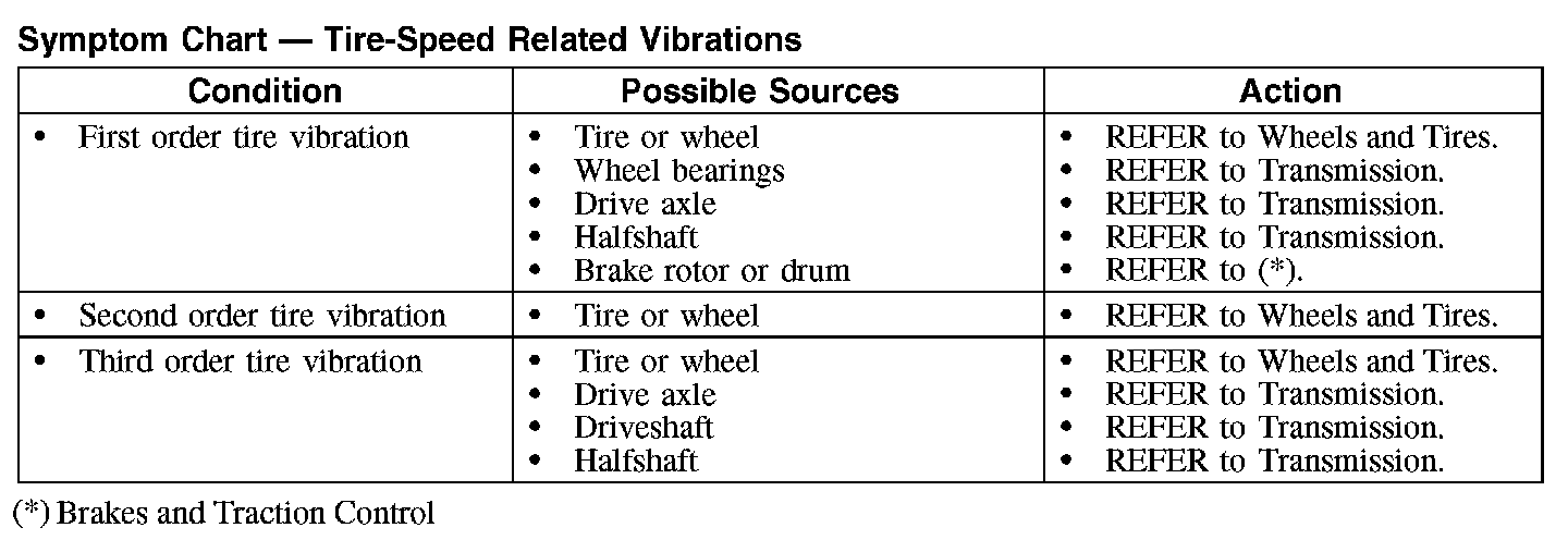 Symptom Chart - Tire-Speed Releated Vibrations: