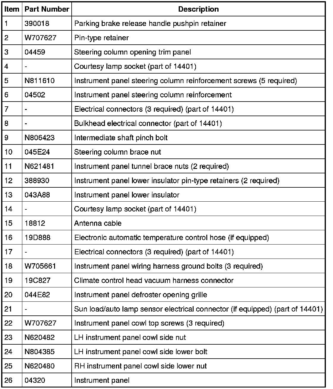 Instrument Panel - Exploded View