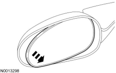 2. WARNING: Place a shop towel between the hands and the exterior mirror glass for protection in case of glass breakage during mirror service. Failure to follow this instruction may result in serious personal injury.